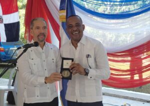 Juan Pablo Uribe entregó la medalla a Jorge Carela, alcalde del municipio de Nigua.
