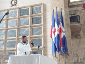 La misa fue oficiada por el reverendo padre Wellington Rosario, mientras que Gustavo Ubrí, director del Panteón Nacional, dio las gracias a las Fuerzas Armadas por su significativa presencia, además de destacar el carácter religioso de este monumento de la patria.