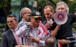 El viernes, el mandatario colombiano, dirigiéndose a una multitud de manifestantes pro palestinos frente a la sede de la ONU en Manhattan, pidió una fuerza armada global cuya prioridad «sea liberar a los palestinos» y agregó: «Esta fuerza tiene que ser mayor que la de Estados Unidos».