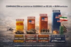 Si en apenas seis días esta guerra ha costado entre 7,000 y 9,000 millones de dólares, la matemática del conflicto empieza a dibujar escenarios inquietantes.