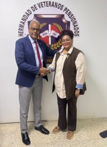 Santo Domingo, D.N. El presidente de la Hermandad de Veteranos FF.AA. y P.N., Mayor General Valerio Antonio García Reyes, ERD, recibió en su despacho a la Doctora Yubelkis Aquino, candidata a presidenta del Colegio Médico Dominicano (CMD)